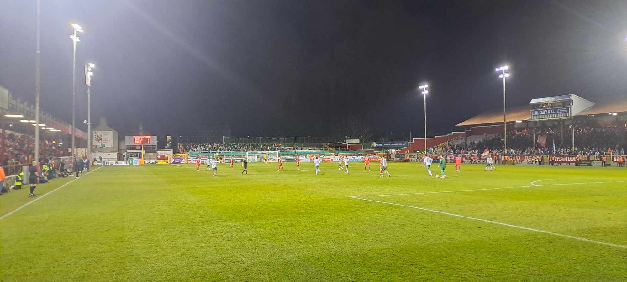 My friend, a Shels fan, got me a ticket among the home supporters. We stood on the opposite side from the City fans, and I could hear them cheering throughout the entire 90 minutes—typical Rebel Army when facing the Dubs.